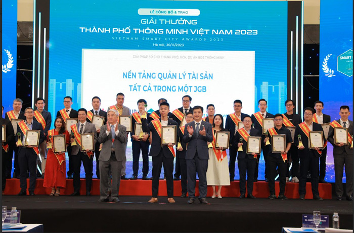 Giải thưởng được tổ chức thường niên từ năm 2020 nhằm tôn vinh những giải pháp giúp các đô thị phát triển thông minh, bền vững, mang lại tiện ích cho người dân, đồng thời kết nối hợp tác hình thành những mô hình kiểu mẫu phù hợp xây dựng và phát triển thành phố thông minh tại Việt Nam. JGB Smart Property đã xuất sắc nằm trong 32 đơn vị đạt giải thưởng Thành phố thông minh Việt Nam 2023 trong tổng 100 đề cử đến từ các doanh nghiệp, cơ quan trong và ngoài nước.